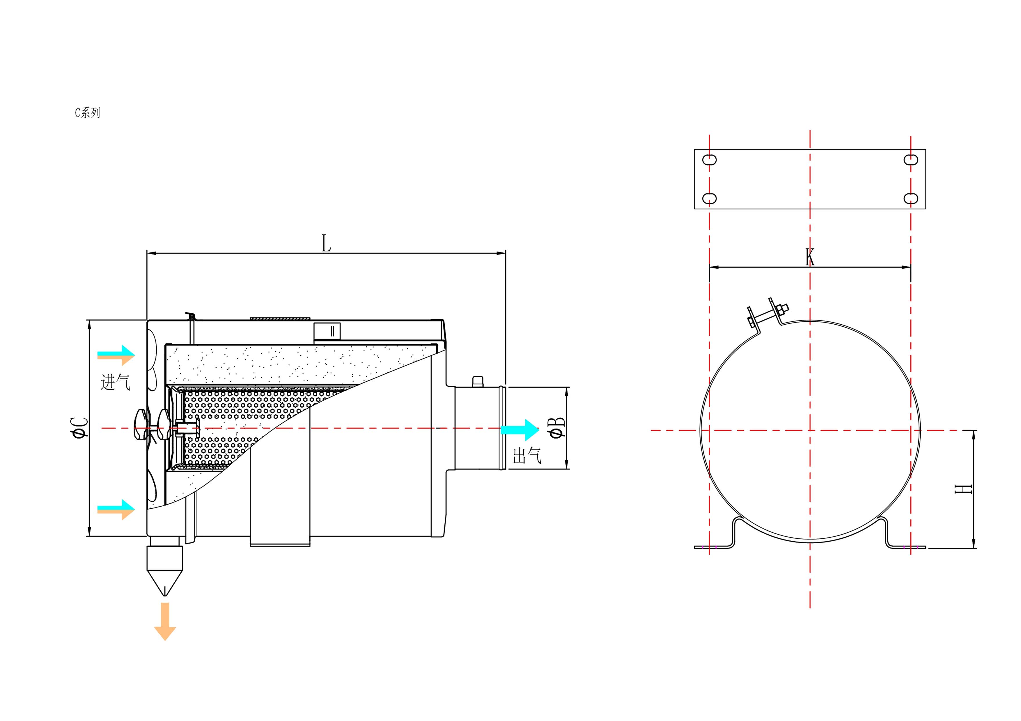 Воздушный фильтр CL серии CL изменяет радиальный воздухозаборник традиционного продукта, а воздух входит в корпус воздушного фильтра через впускное отверстие конечной крышки, чтобы реализовать употребление прямого воздуха. После воздуха в воздушном фильтре он вращается с высокой скоростью действием статического закрученного лопасти на торцевой крышке, а генерируемая центробежную силу отделяет самые тяжелые примеси от воздушного потока. Эти загрязняющие вещества разряжаются через интегральный эвакуатор клапана. Только очищенные воздушные потоки на воздушные фильтрующие элементы (первичные и стадии безопасности фильтрации). Эти элементы сохраняют 99,99% загрязняющих веществ, которые не были устранены на первом этапе. Затем чистый воздух протекает в двигатель или воздушный компрессор.